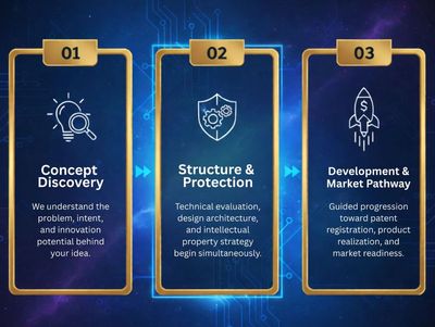 Our role is to convert early-stage ideas into structured innovation pathways through design development, patent strategy, and commercialisation guidance.